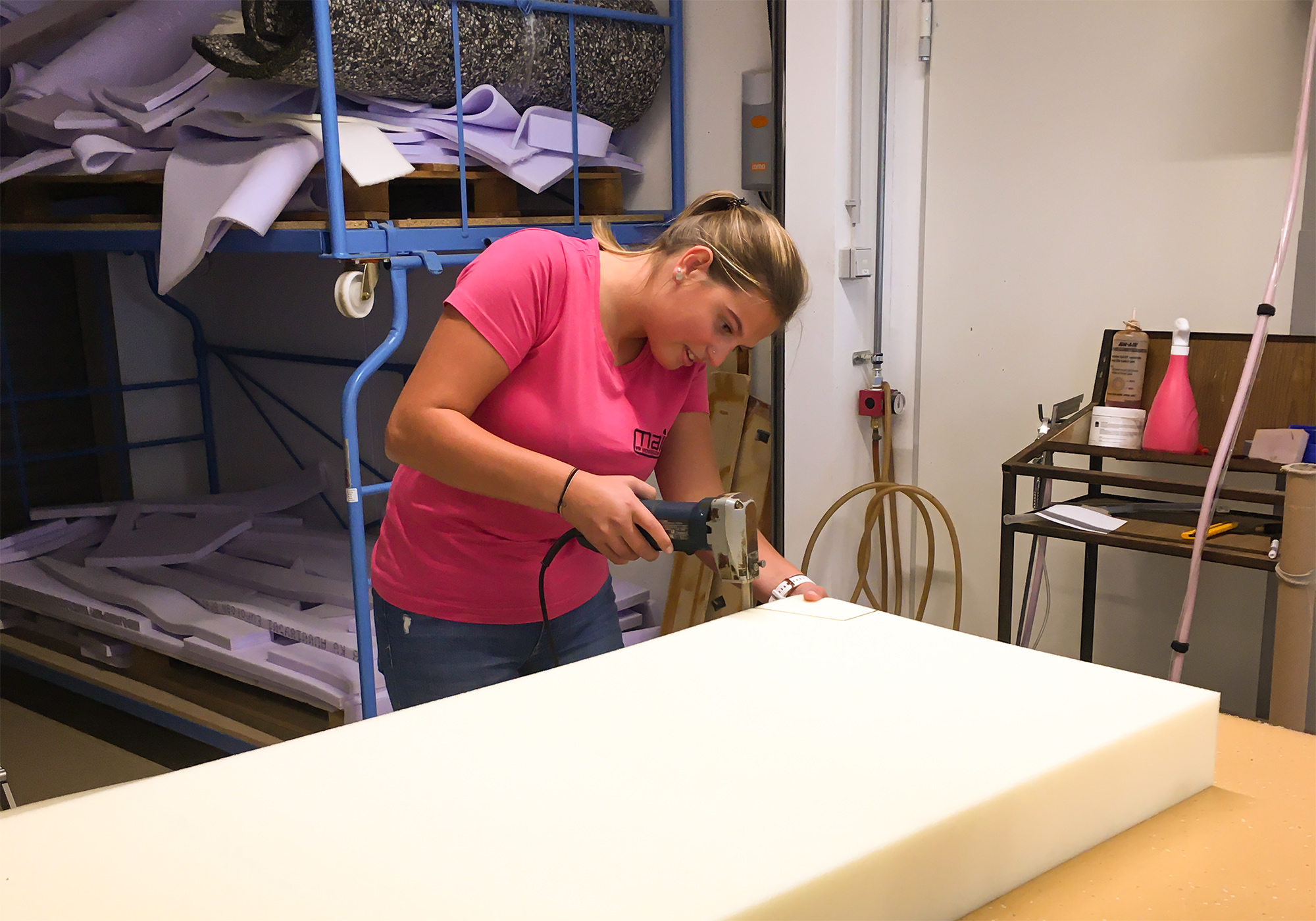 Vanausbau - der Schaumstoff wird passgenau zugeschnitten