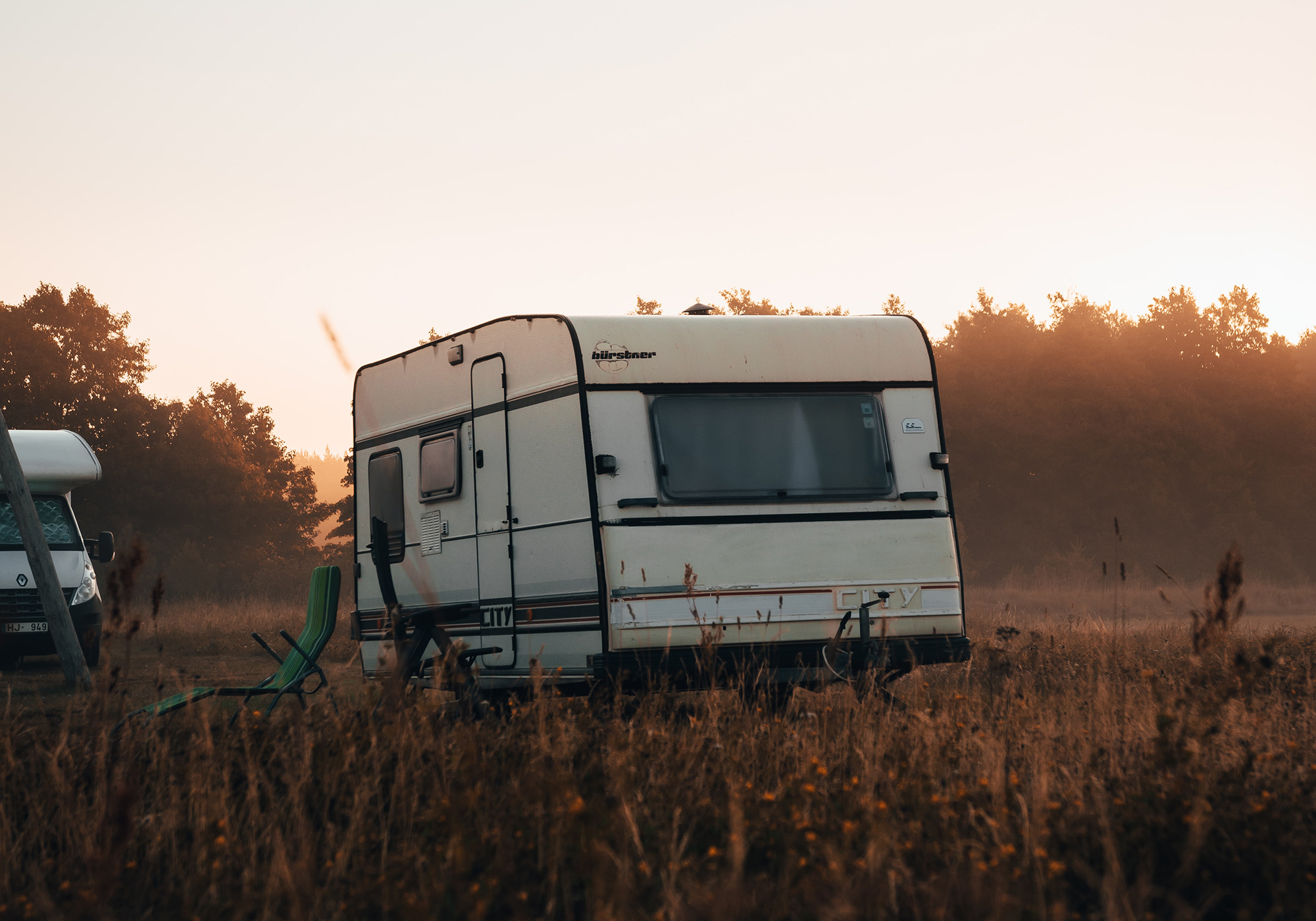 Altes Wohnmobil im Sonnenuntergang