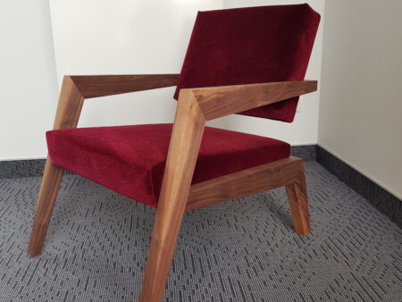 Designer Stuhl, in Holz, Textil rot
